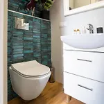 У Apartament Tiny House також є підлога з плитки. Апартаменти пропонують гостям фен і банні рушники. Крім того, ви знайдете душову кабіну.